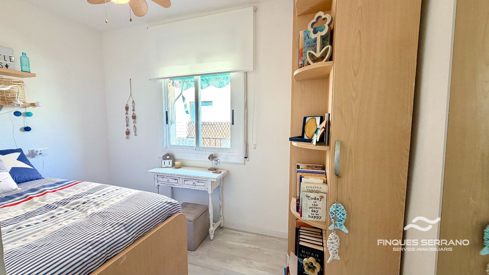 Situat en una quarta planta, fet que li aporta una llum i privacitat especials, en una finca tranquil·la a pocs passos de la platja i amb tots els serveis a prop.