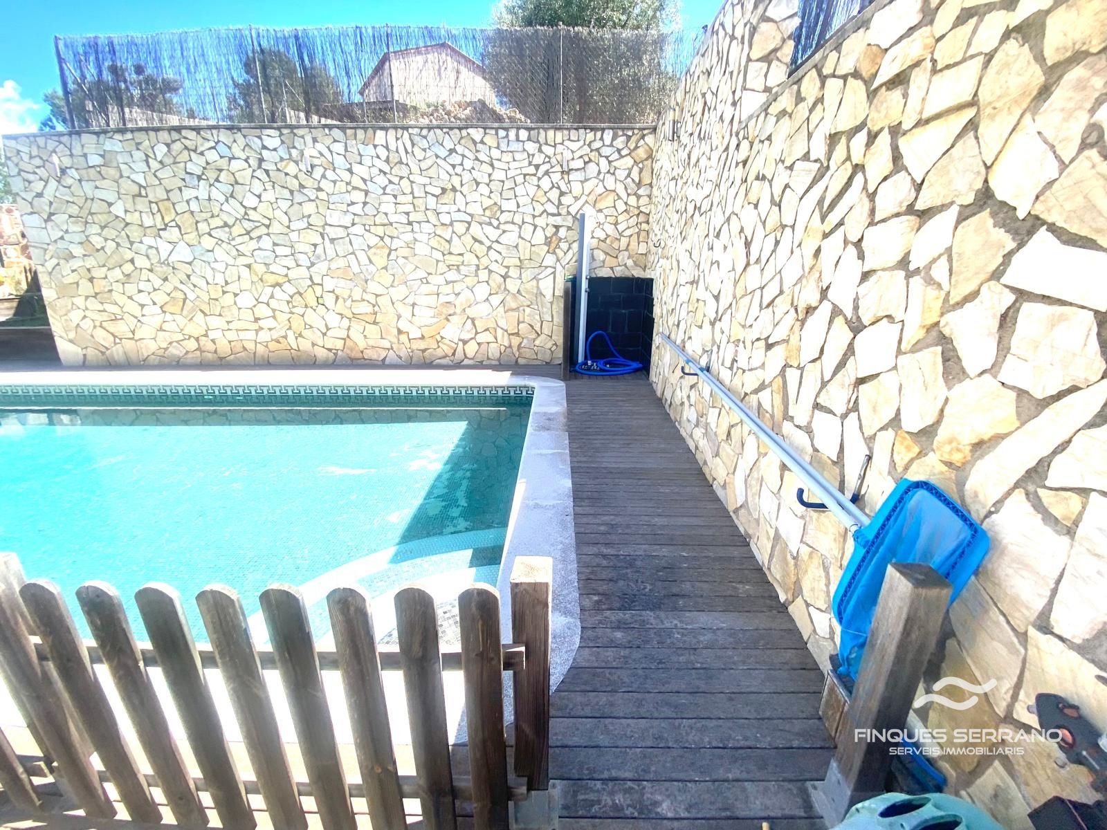 Dispone de dos amplias habitaciones dobles, una de ellas tipo suite con vestidor. Cuenta con una cocina independiente con salida a porche y un luminoso salón-comedor, también con acceso directo al exterior. En esta zona encontramos un fantástico espacio con gran piscina privada, zona de barbacoa y un jardín que rodea toda la vivienda, ideal para disfrutar en familia o con amigos. Además, incluye un baño completo.
