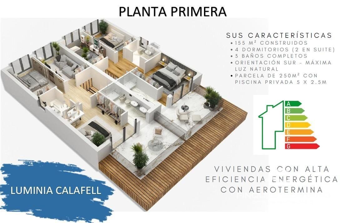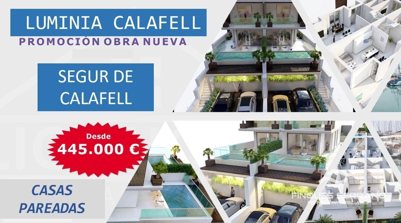 Te presenta LUMINIA CALAFELL, esta exclusiva promoción de Casas / Chalets Pareadas de obra nueva. ..IMPORTANTE EL PRECIO NO INCLUYE NINGUN COCHE. NI NADA PARECIDO, EL PROYECTO PRESENTA UNA PROYECCION DE COMO TE PUEDES IMAGINAR VIVIENDO EN TU CASA DE OBRA NUEVA. ..LUMINIA te presenta una vivienda pareada de obra nueva en Segur de Calafell, diseñada para ofrecer el máximo confort, eficiencia y luminosidad. Con un diseño moderno, materiales de alta calidad y un enclave privilegiado a solo 700 mts. de la playa, esta promoción representa una oportunidad única para vivir o invertir...Conexión excelente con Barcelona (50 min.), Sitges (15 min.) y Tarragona (30 min.)...El proyecto consiste en la construcción de viviendas unifamiliares pareadas para amantes de la vida tranquila y la comodidad cerca del MEDITERRANEO...Estas viviendas han sido diseñadas para que disfrutes de las ventajas de vivir y disfrutar del entorno, con la mejor ubicación y orientación, y pensadas para cubrirte ampliamente las necesidades de un estilo de vida moderno...SUS CARACTERÍSTICAS: ..• 155 M² CONSTRUIDOS.• 4 DORMITORIOS (2 EN SUITE).• 3 BAÑOS COMPLETOS.• COCINA AMERICANA (CON ELECTRODOMESTICOS).• ORIENTACIÓN SUR – MÁXIMA LUZ NATURAL.• PARCELA DE 250M².• PISCINA PRIVADA 5 X 2.5M.• PLACAS SOLARES.VIVIENDAS CON ALTA EFICIENCIA ENERGÉTICA CON AEROTERMIA (utiliza la energía del aire para el sistema de climatización, producir agua caliente y ventilación por conductos)...Todas las viviendas cuentan con estupendas calidades y tienen las mismas características..Zona delantera con espacio para aparcar vehículos y acceso pavimentado a la vivienda. Accesos independientes a la parcela para peatones y vehículos...A la vivienda se accede por el lateral de la planta baja, donde encontramos el recibidor con la escalera para subir a la planta primera. Entrando hay un único espacio de cocina comedor-estar que da a un porche y en el jardín donde encontramos la piscina. Y en la parte trasera de la planta baja hay una habitación doble un baño y un lavadero. .En la planta primera hay un baño y 3 habitaciones dobles, una de ellas tipo suite con baño en su interior, desde esta habitación hay salida a una AMPLIA TERRAZA...En la cubierta plana, se colocarán los elementos necesarios para las instalaciones de telecomunicaciones y chimenea, así como placas fotovoltaicas..La vivienda tiene ventilación cruzada y garantiza en la sala el soleamiento directo entre las 10 y las 12 horas solares en los solsticios de invierno...\"Luminia no es solo una vivienda, es un estilo de vida. Espacios amplios, luz natural, eficiencia energética y una ubicación inmejorable hacen de esta promoción una inversión única para vivir cerca del MAR MEDITERRANEO”.Se encuentra a 500 metros aprox., de supermercado DIA Supermercado CAPRABO, zona de Ocio con 8 salas de cine, Mac Donals y otros Restaurantes y servicios..también se encuentra a tan solo 10 minutos andando hasta la Estación de Tren de Segur de Calafell...“No dejes pasar esta OPORTUNIDAD, contáctanos para más información y visitar Luminia Calafell – No te arrepentirás”..IMPORTANTE EL PRECIO NO INCLUYE NINGUN COCHE. NI NADA PARECIDO, EL PROYECTO PRESENTA UNA PROYECCION DE COMO TE PUEDES IMAGINAR VIVIENDO EN TU CASA DE OBRA NUEVA......