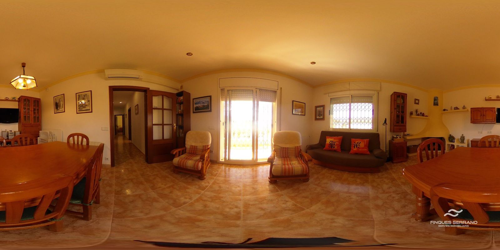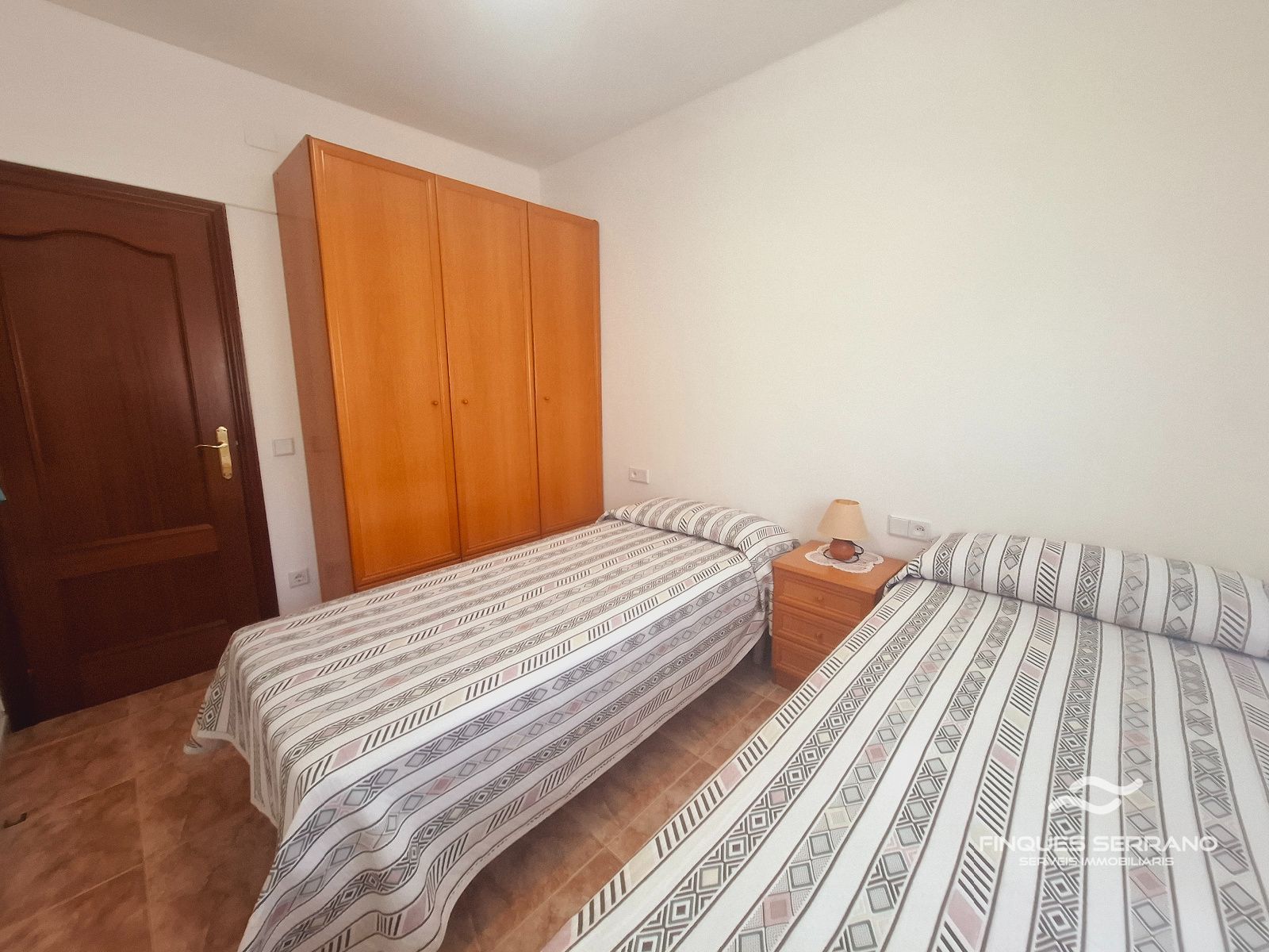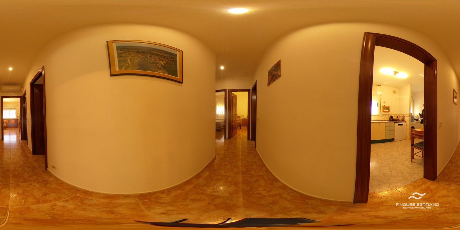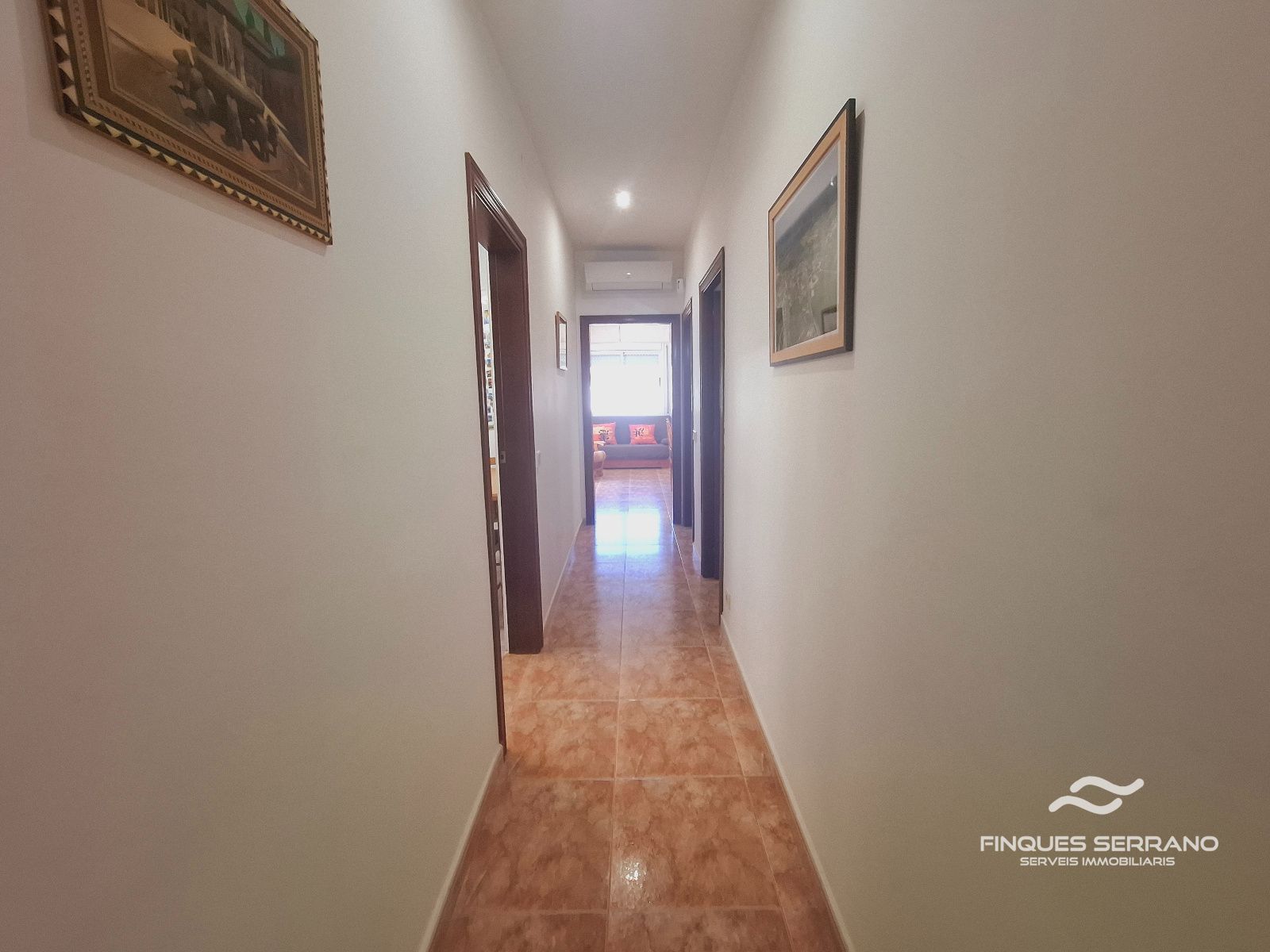 La vivienda principal, distribuida en una sola planta a nivel de calle, ofrece una distribución práctica y elegante. Un amplio recibidor da paso a un cuidado distribuidor que conecta con tres luminosas habitaciones dobles, todas con excelente orientación solar, y dos baños completos, uno equipado con bañera y otro con plato de ducha.