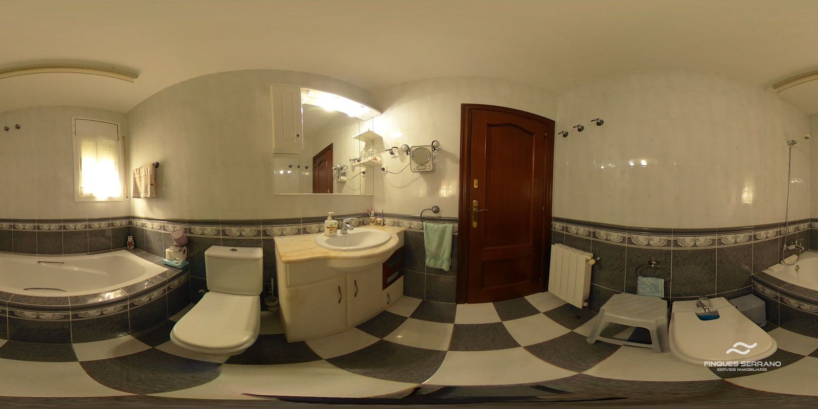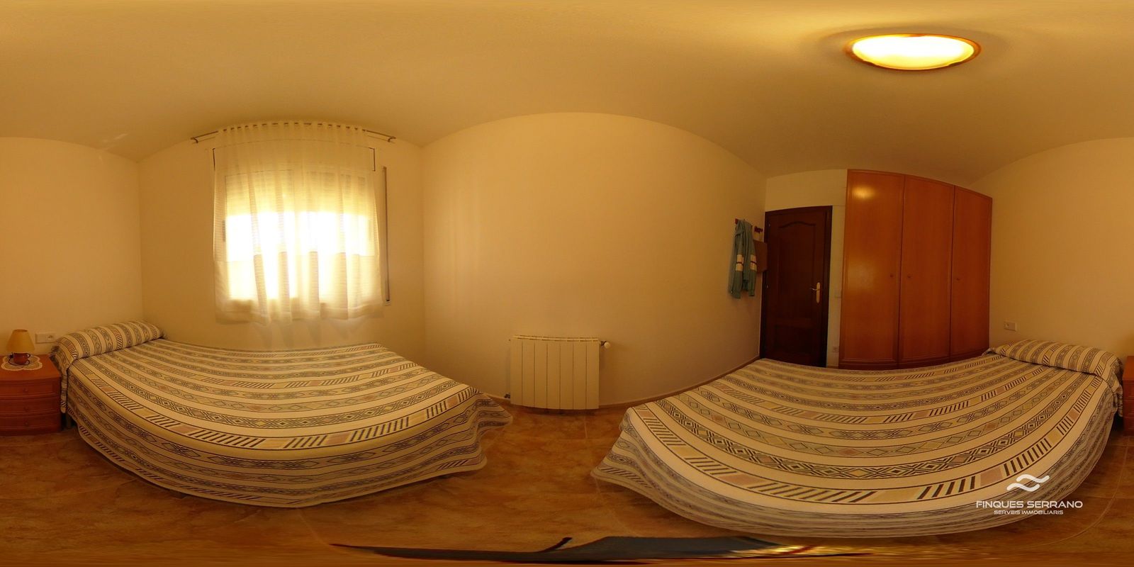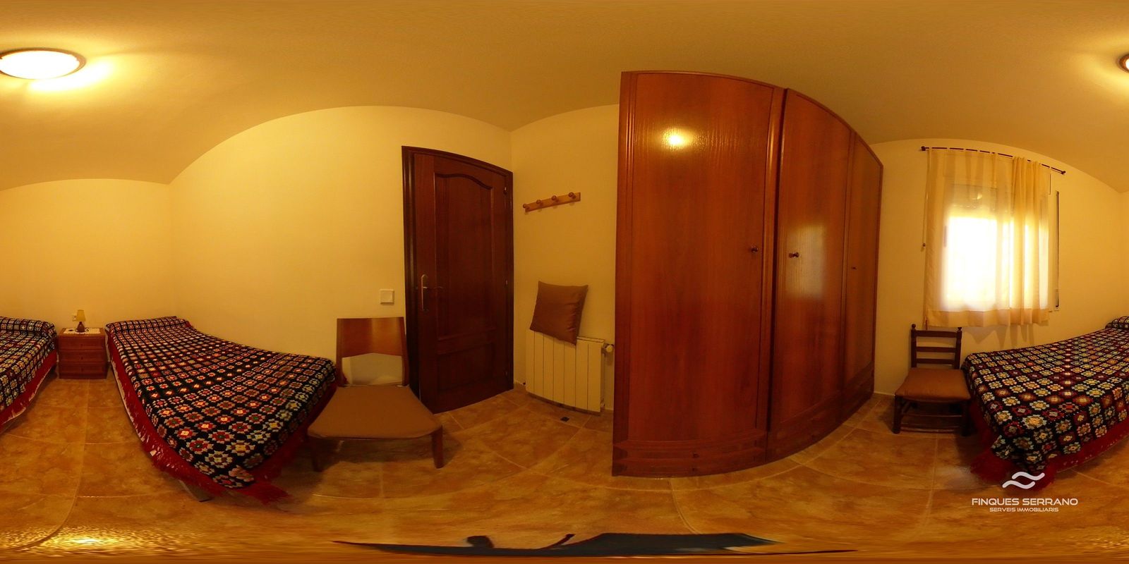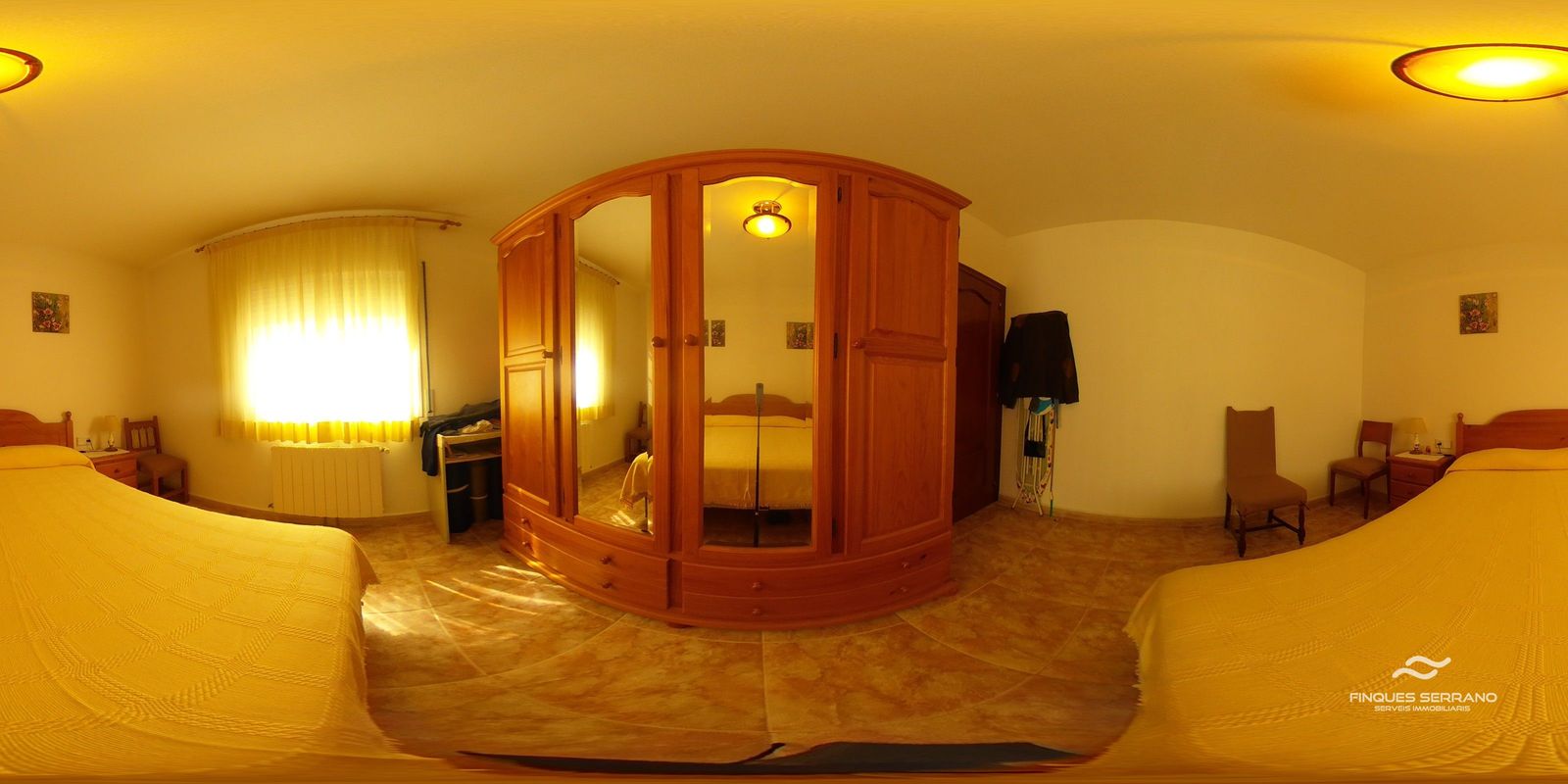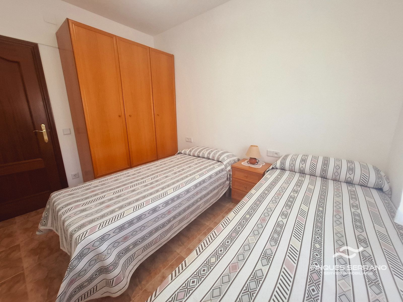 La vivienda principal, distribuida en una sola planta a nivel de calle, ofrece una distribución práctica y elegante. Un amplio recibidor da paso a un cuidado distribuidor que conecta con tres luminosas habitaciones dobles, todas con excelente orientación solar, y dos baños completos, uno equipado con bañera y otro con plato de ducha.
