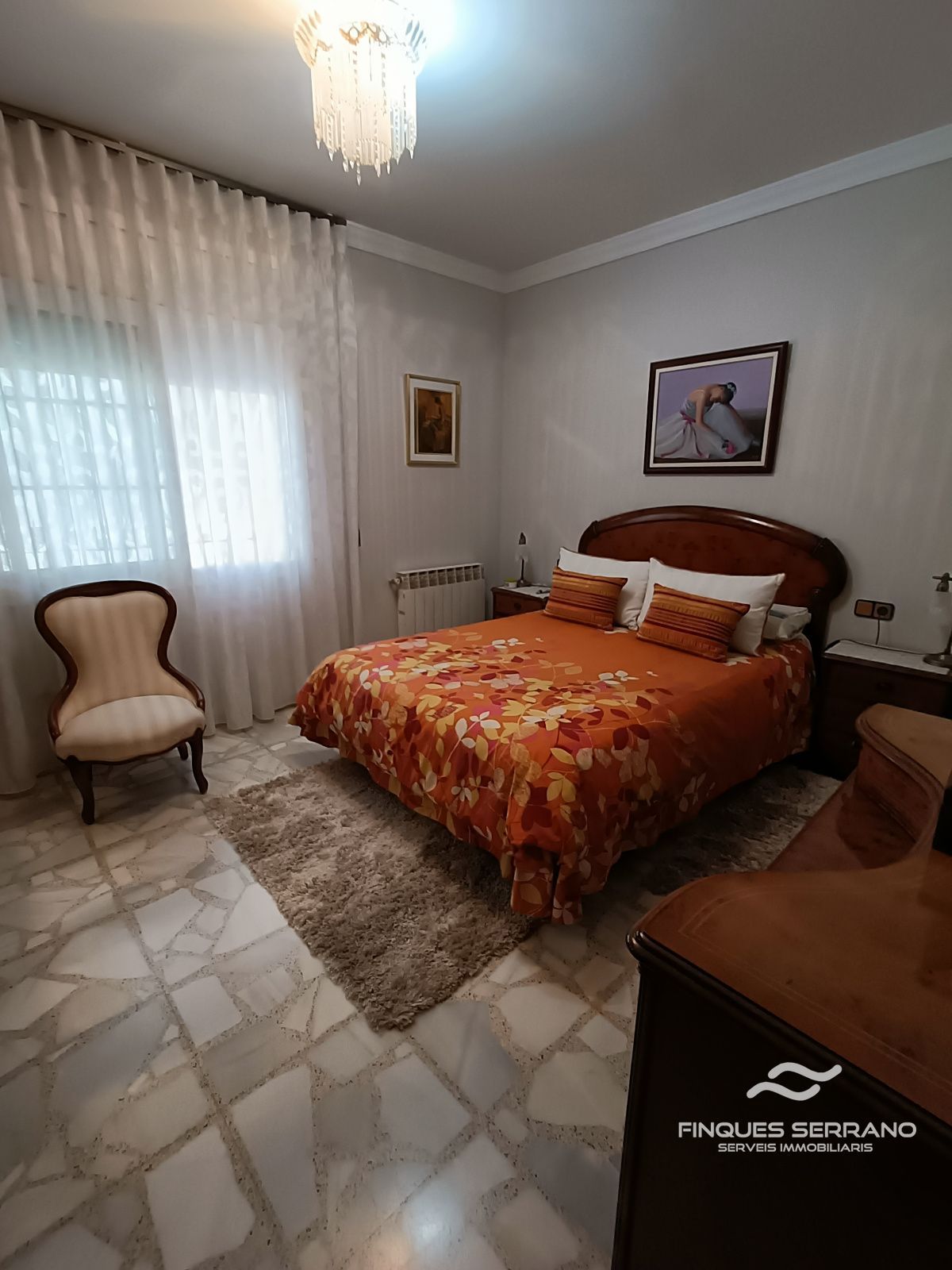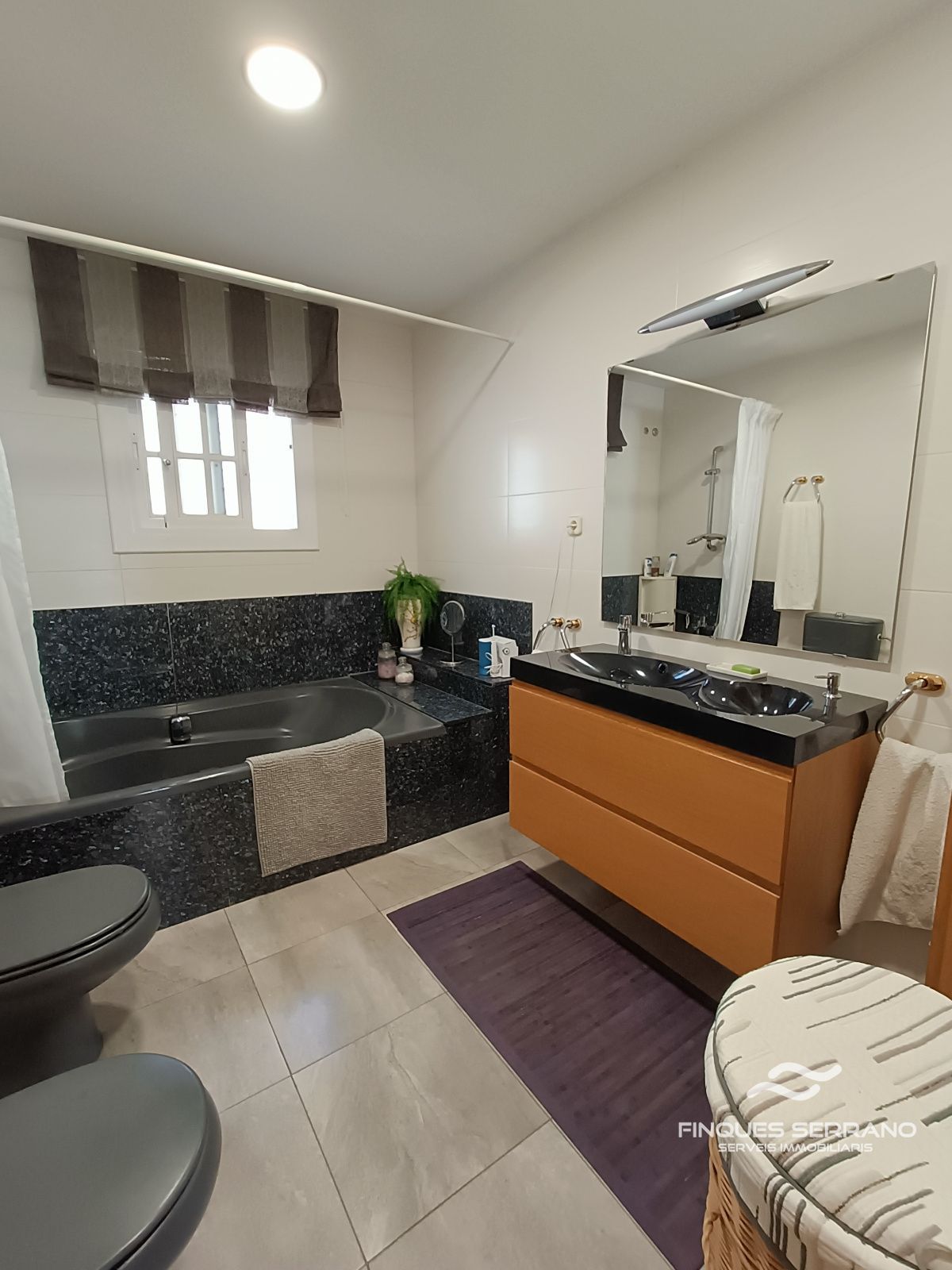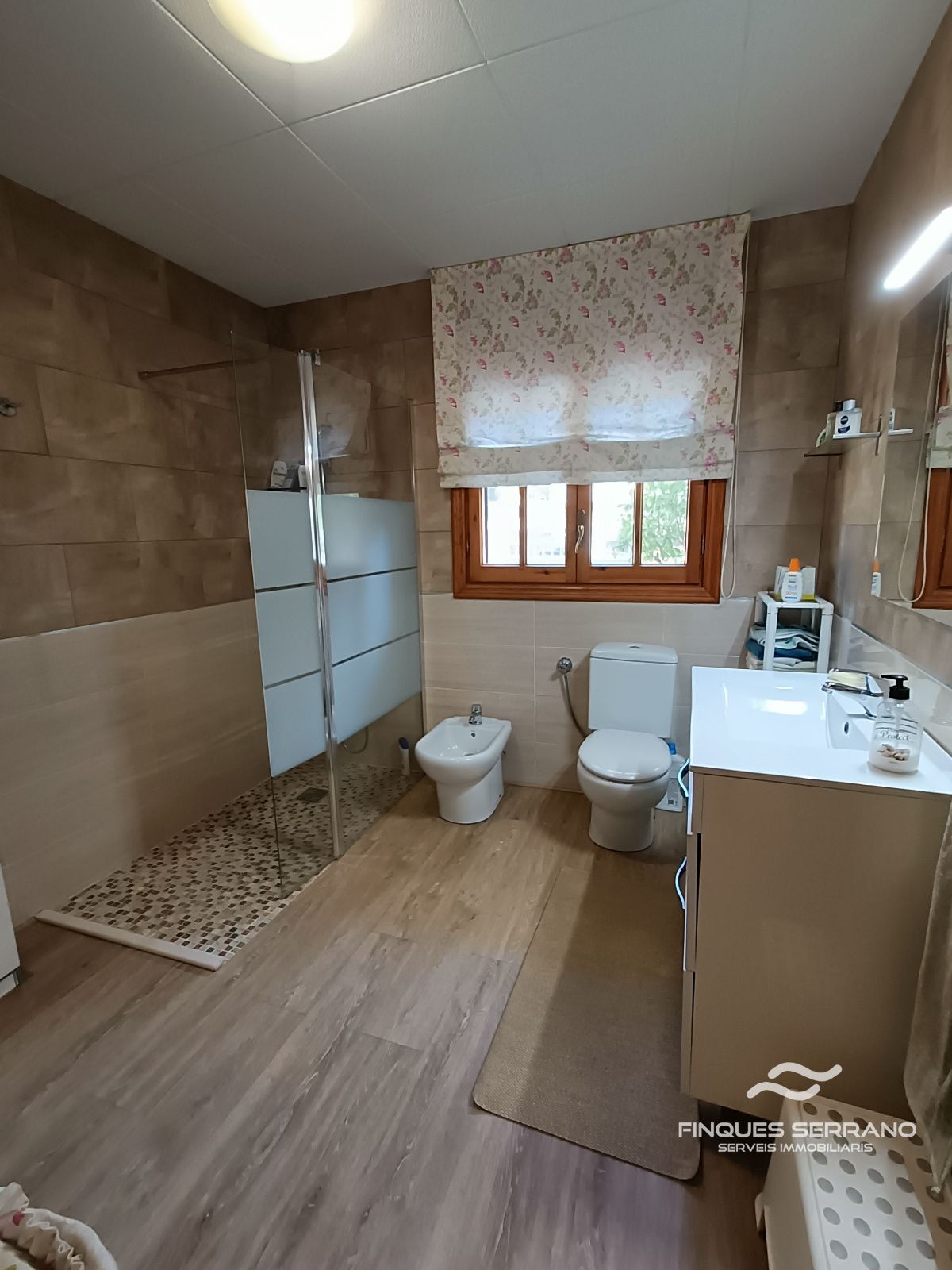 En la planta principal, el protagonismo lo reclama un espectacular salón-comedor de 45 m², un espacio bañado por la luz natural y caldeado por una elegante chimenea que invita al descanso. Esta planta se completa con una cocina independiente totalmente equipada, un baño completo y cuatro dormitorios, de los cuales tres son dobles y uno individual, ofreciendo todo el confort necesario en un mismo nivel. Los acabados de calidad se perciben en cada rincón, con puertas de roble y carpintería exterior de Climalit que asegura un excelente aislamiento térmico y acústico.